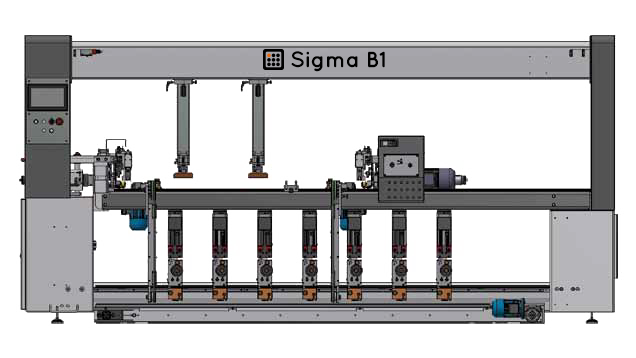 Sigma line includes the Sigma B1 and Sigma B2 machines, automatic boring machines equipped with rails hopper feeder and special heads for every need, and Sigma B1 TD and Sigma B2 TD, extremely precise automatic boring and pushing/spinner machines. The Sigma Center is also part of the line, a complete and highly efficient boring centre designed for large-production.